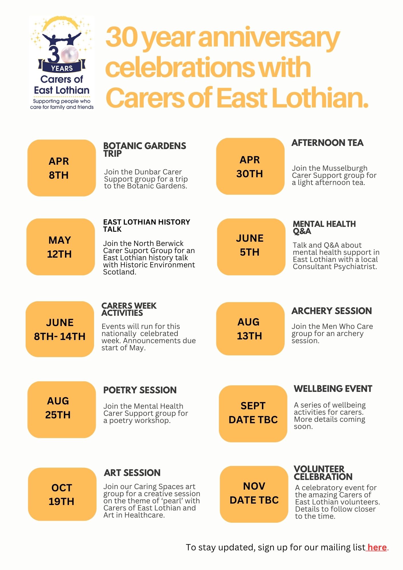 As you may have heard, we are celebrating our 30th anniversary this year at Carers of East Lothian.