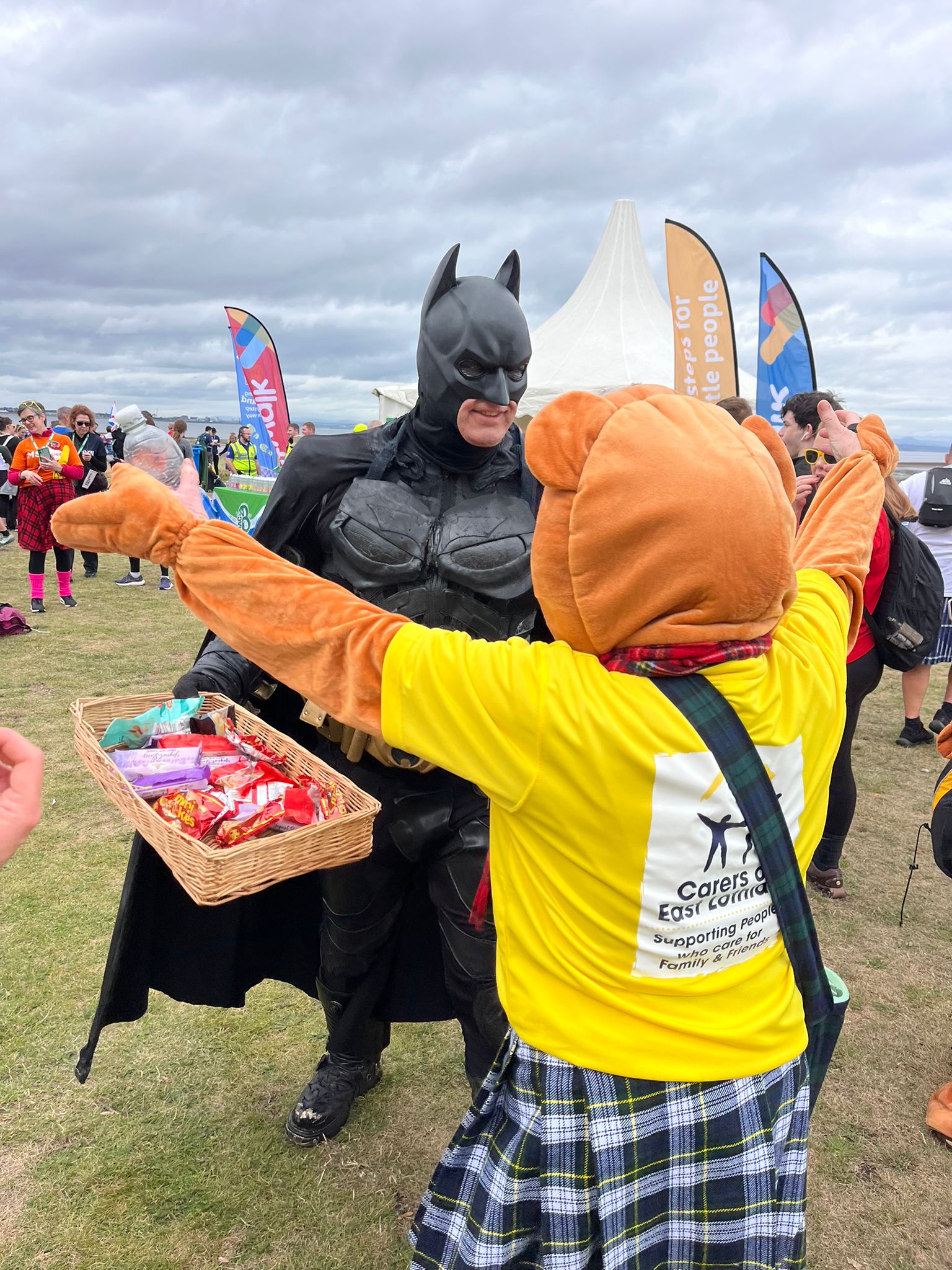 The day was full of energy and fun – with walkers as young as 7, our amazing volunteers in bear costumes, and heaps of enthusiasm all round. One bear in particular made it their mission to tell absolutely everyone about the amazing carers in East Lothian – including Baymax, a stormtrooper and even Batman!